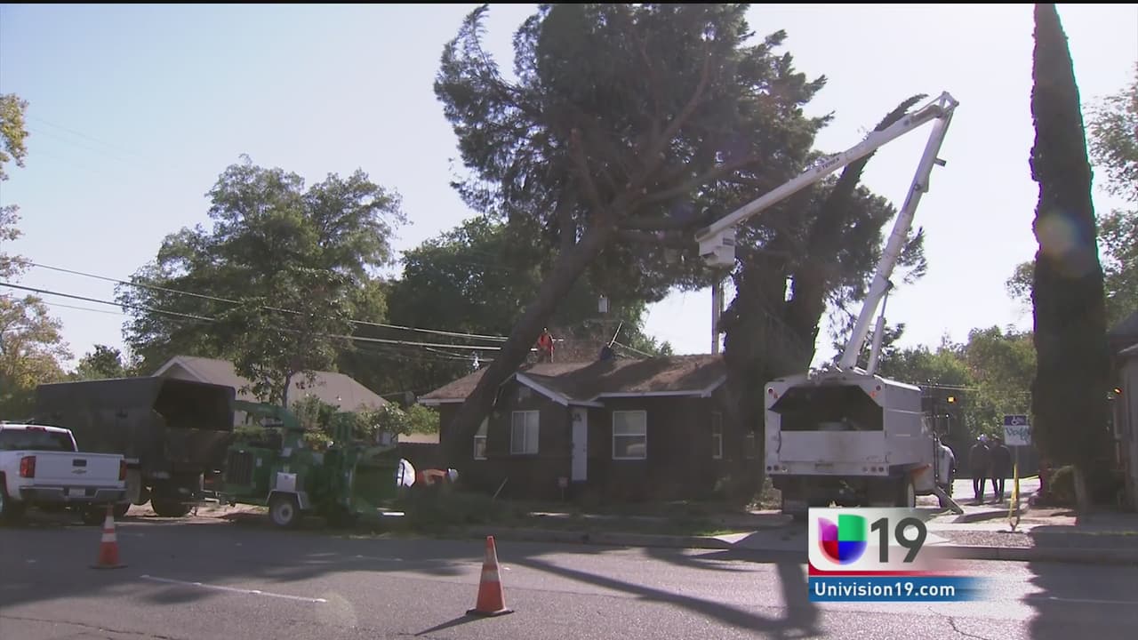 La fuerza de la gravedad por poco ocasiona que un árbol cayera encima de una vivienda en Modesto.