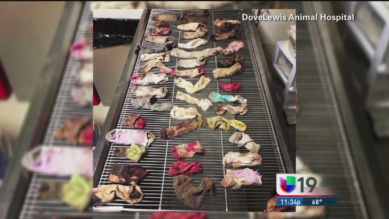 Un perrito fue llevado al veterinario por vómito y descubrieron que se había tragado 43 calcetines.