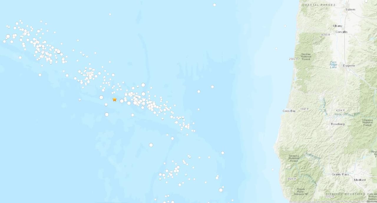 Un terremoto de magnitud 6.3 sacudió la costa de Oregón el jueves por la mañana, de acuerdo al Servicio Geológico de Estados Unidos (USGS).
