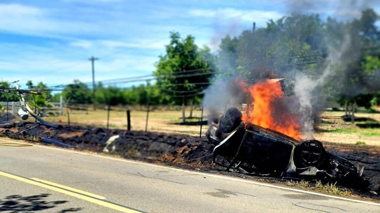 Vehículo pierde el control, vuelca y termina en llamas en Placer; hay una persona lesionada