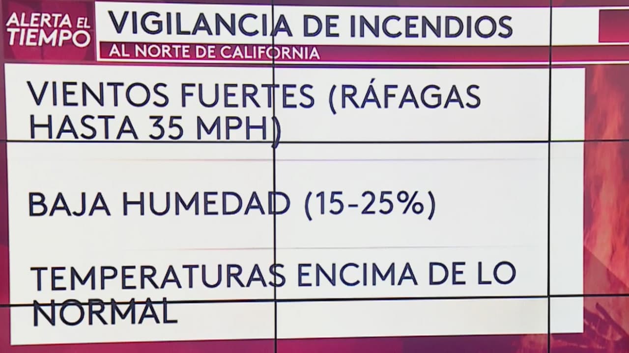 Las condiciones del tiempo en el norte de California podrían producir ráfagas de viento de hasta 35 millas por hora, por lo que el Servicio Meteorológico Nacional emitió una alerta roja por el riesgo de incendios.