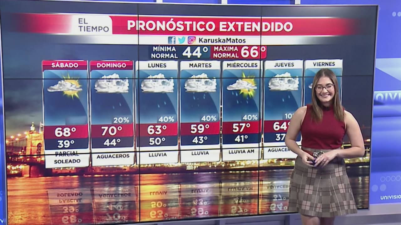 Espere condiciones templadas con temperaturas alrededor de los 60 grados Fahrenheit. Se esperan lluvias para este fin de semana.