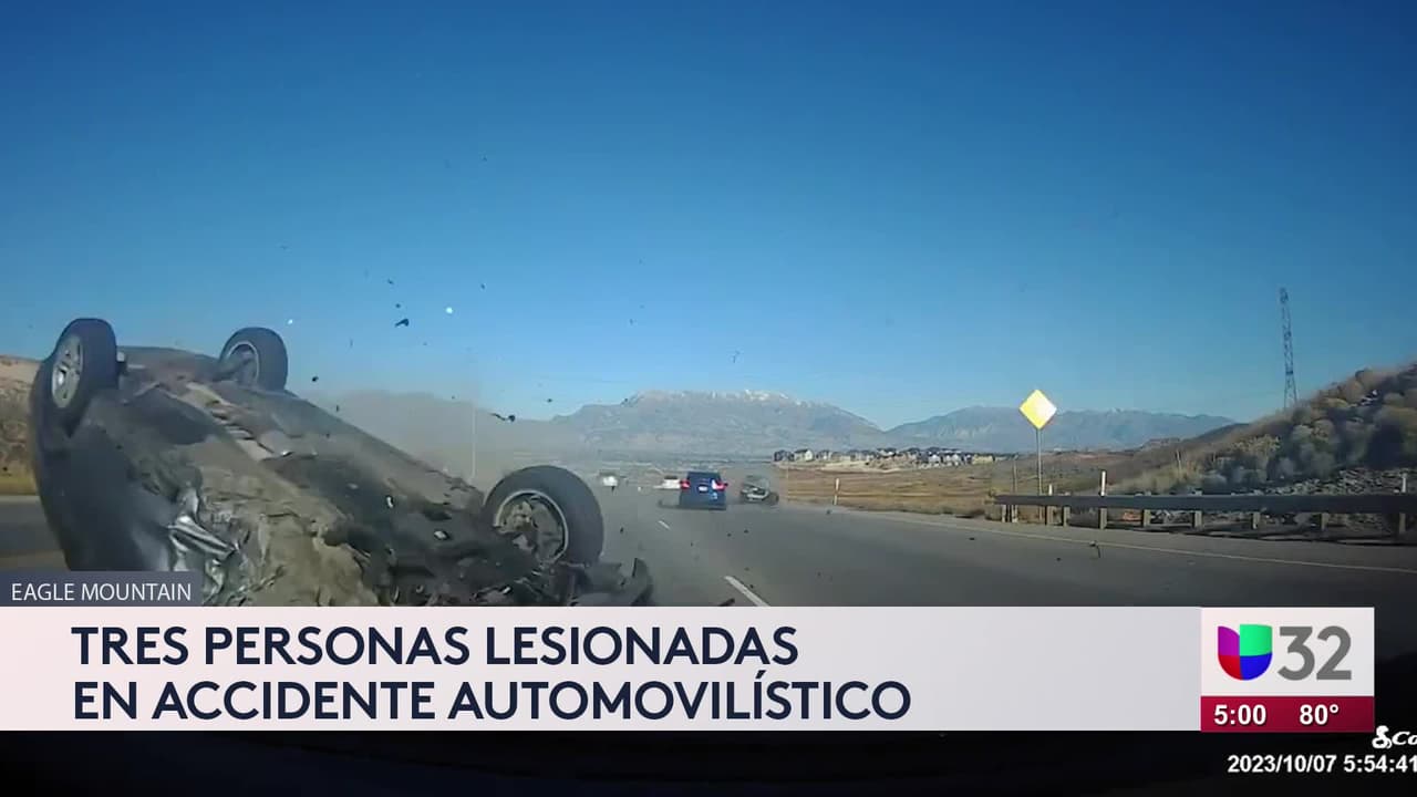 Un adolescente de 17 años perdió el control del vehículo que conducía en Eagle Mountain, invadió el carrril contrario y golpeó dos automóviles. Tres personas resultaron heridas y tuvieron que ser trasladadas a un hospital en donde sus heridas no ponen en riesgo sus vidas. El Sheriff Cannon explicó que descartaron que el accidente haya sido por manejar en estado de ebriedad o bajo el efecto de otra sustancia.