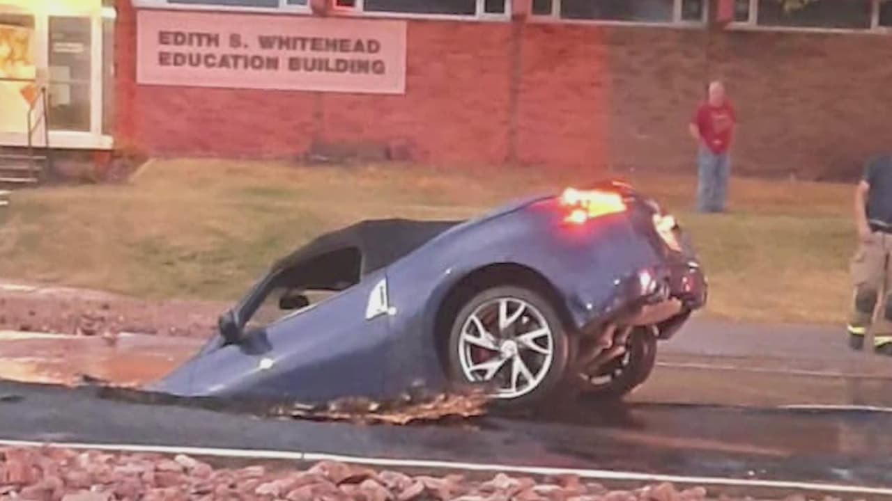 Auto cae en un hoyo creado por la ruptura de una tubería en St. George