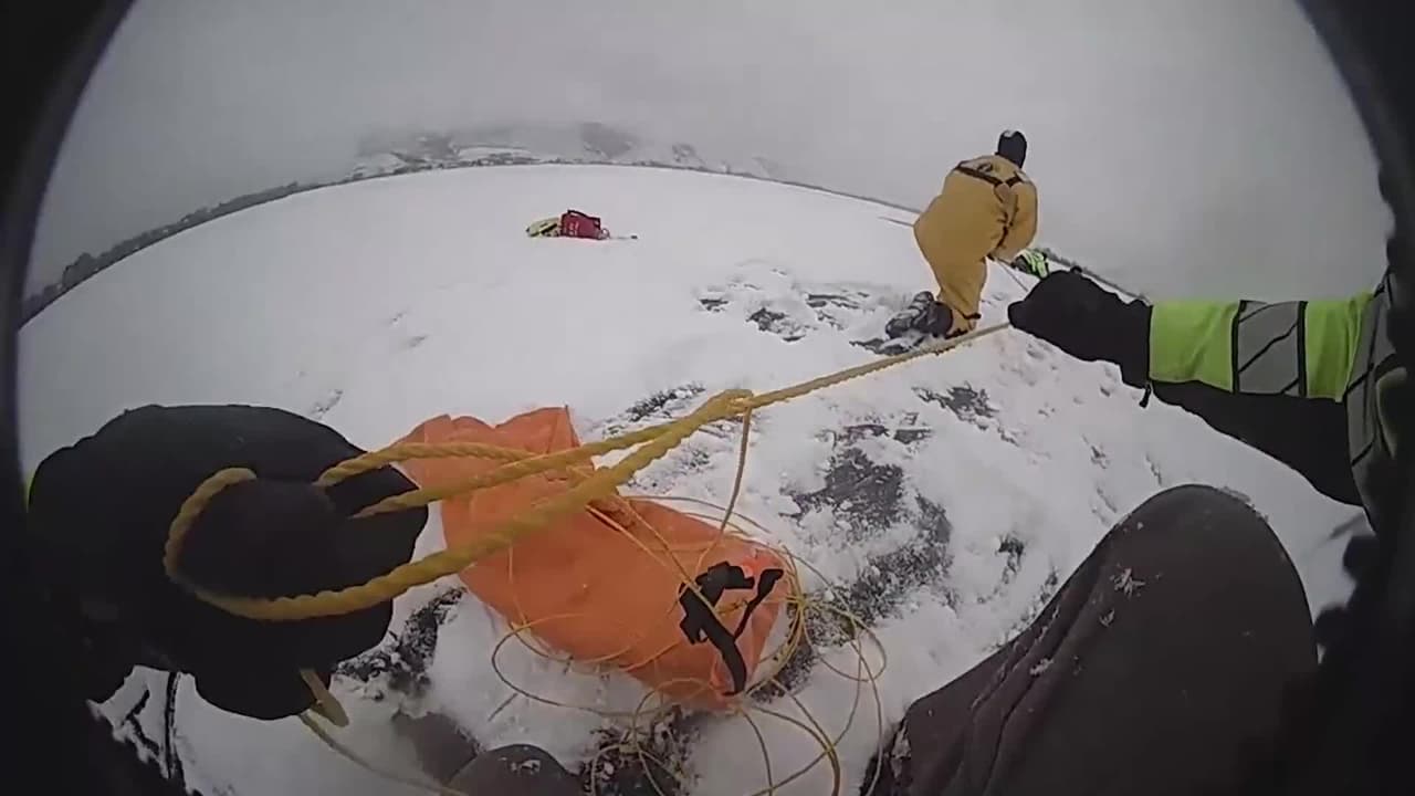 Dramático rescate de un hombre y su perro en lago congelado de Utah