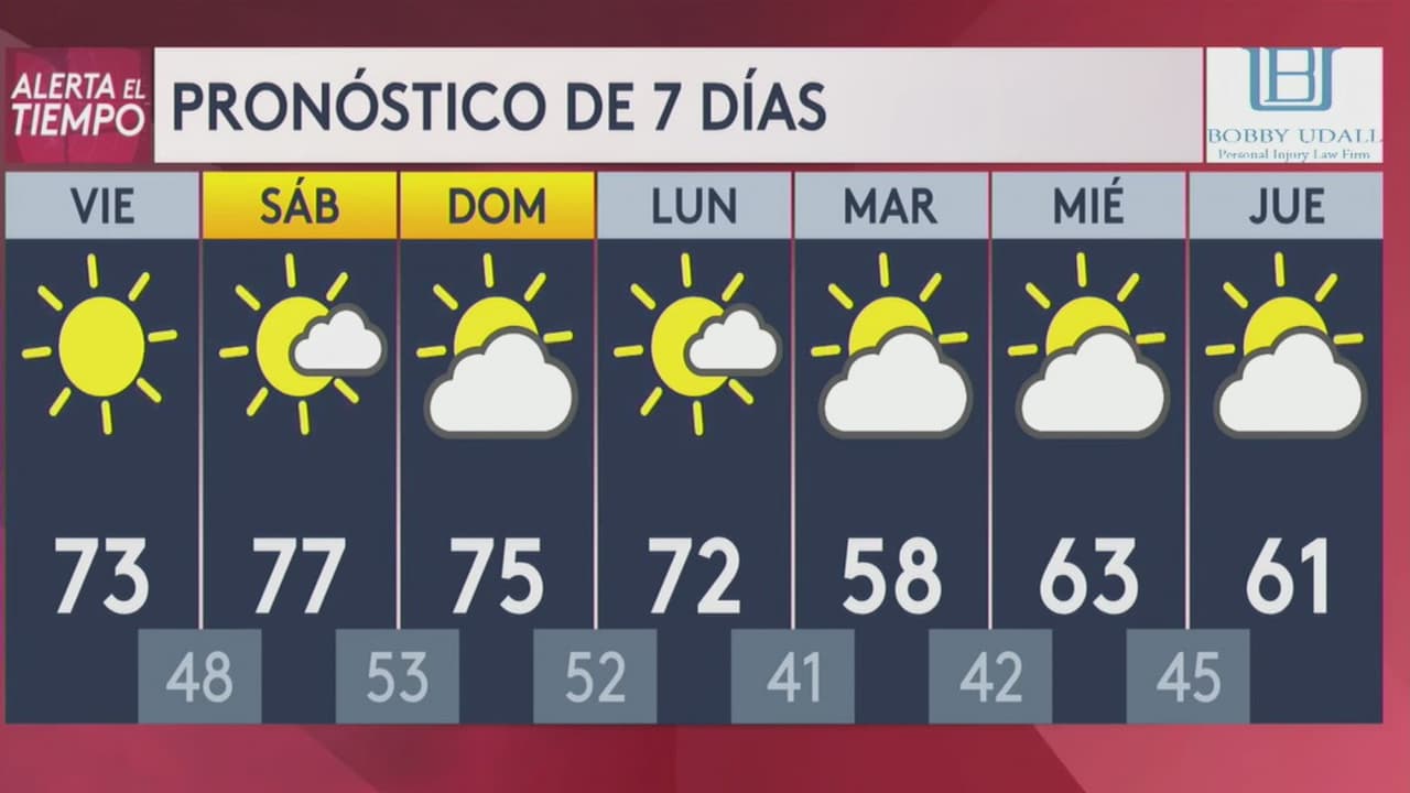 Finaliza la semana laboral con excelentes condiciones, se esperan cielos soleados y despejados mientras el termómetro alcanzará máximas de hasta 73°, para el fin de semana se espera un ligero aumento en el mercurio.