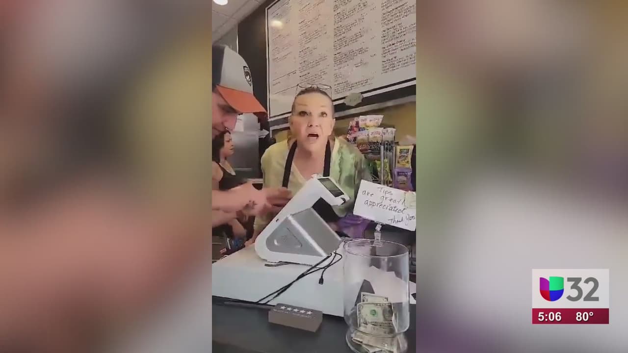 Una mujer que se encontraba en un restaurante hablaba por teléfono con su madre en español, cuando una mujer le gritó que no hablara español y que se "largara del restaurante". Tras una discusión aparece el dueño e intenta resolver el problema. Univision 32 habló con la afectada: "Me sentí muy triste", dijo Adriana Vega. El dueño del lugar asegura que ha recibido cientos de comentarios en contra de lo que sucedió.