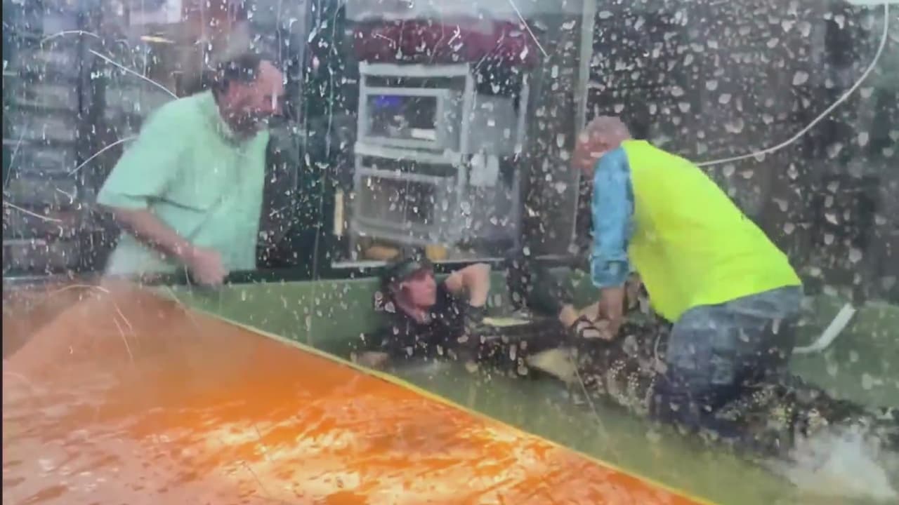 En el video se observa como el caimán mordió a su entrenadora por la mano y la arrastró hasta su estanque, pero gracias a la intervención de los espectadores logró zafarse del hocico del reptil.