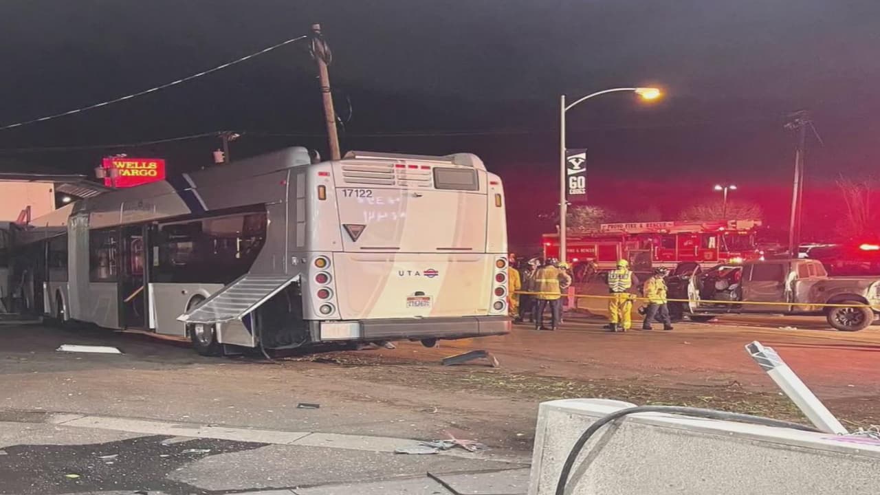 Rescatan a dos personas atrapadas en un vehículo tras impactarse con un autobús de la ciudad de Provo