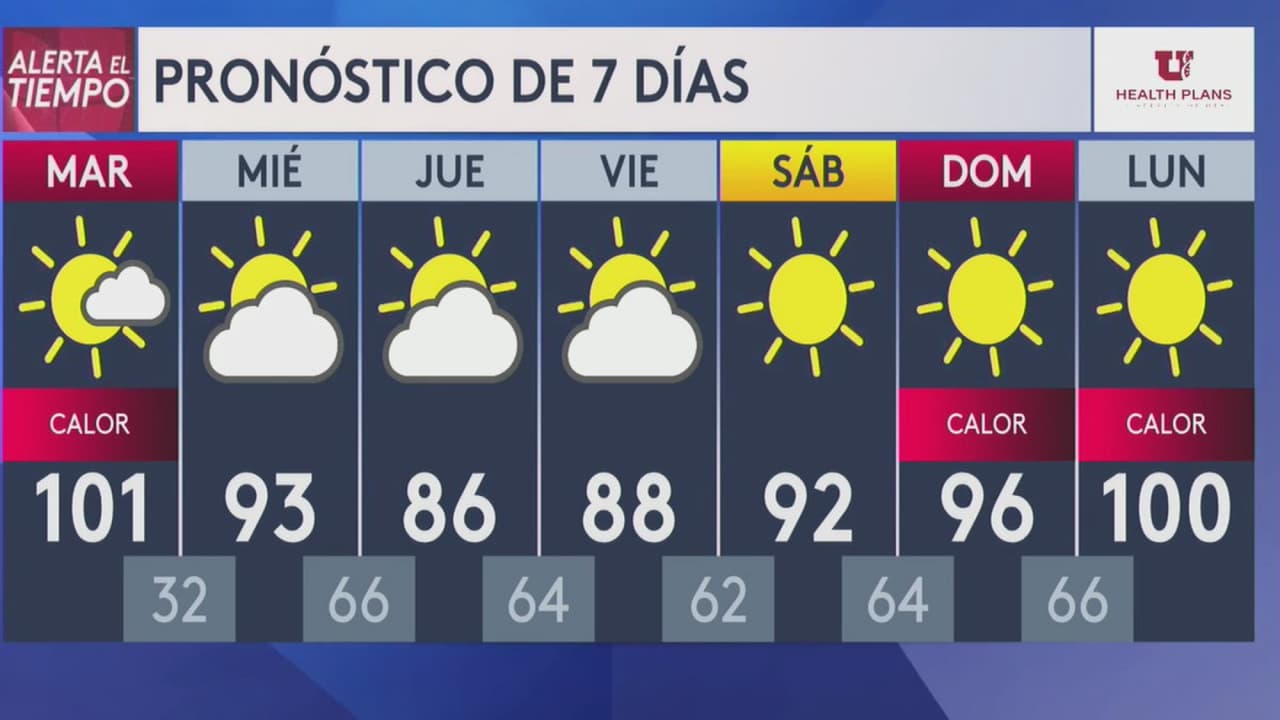 Calor intenso en la región, se espera que este martes sea el día más caluroso de la semana con máximas de hasta 101°F. Manténgase bien hidratado.