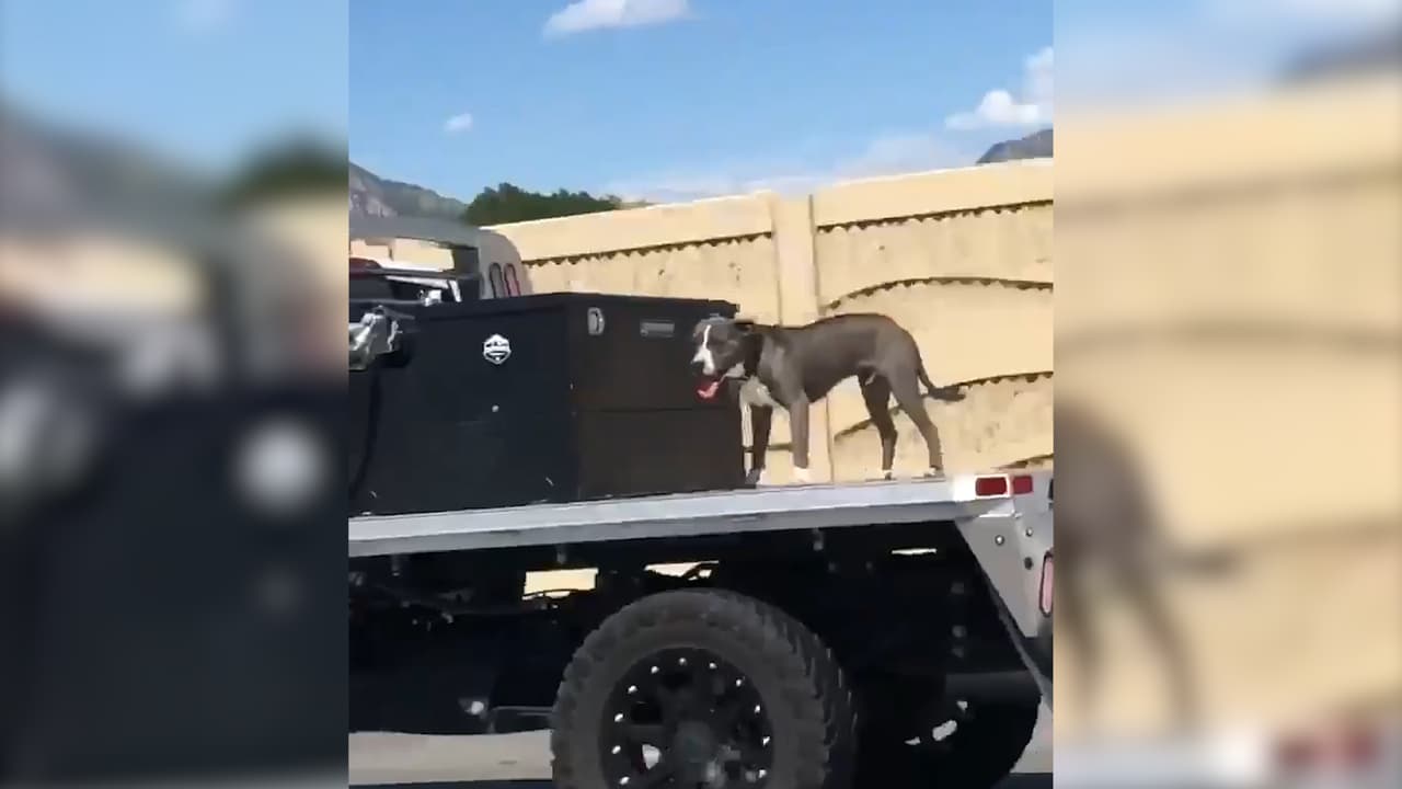 ¿Tortura animal? perro viaja a 70 mph en la plataforma de un camión en carretera de Utah