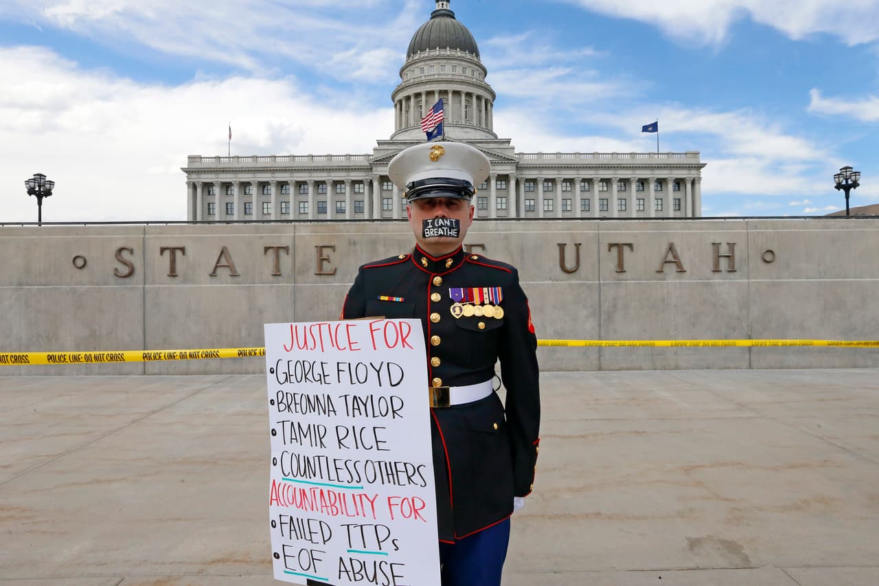 Veterano condecorado realiza protesta solitaria frente a capitolio de Salt Lake City