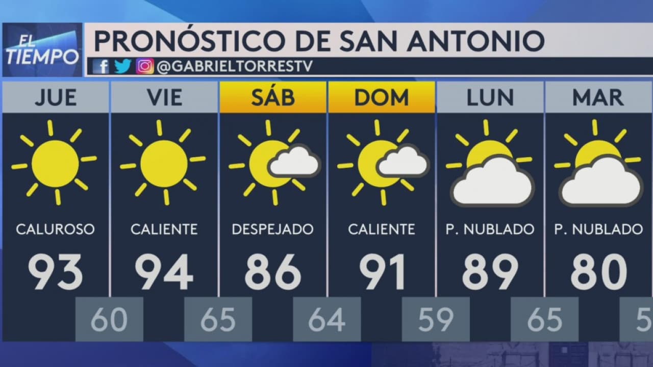Las temperaturas máximas estarán en el rango de los 93 grados para este jueves. Se aconseja que durante estos días las personas beban mucha agua y se protejan del sol.