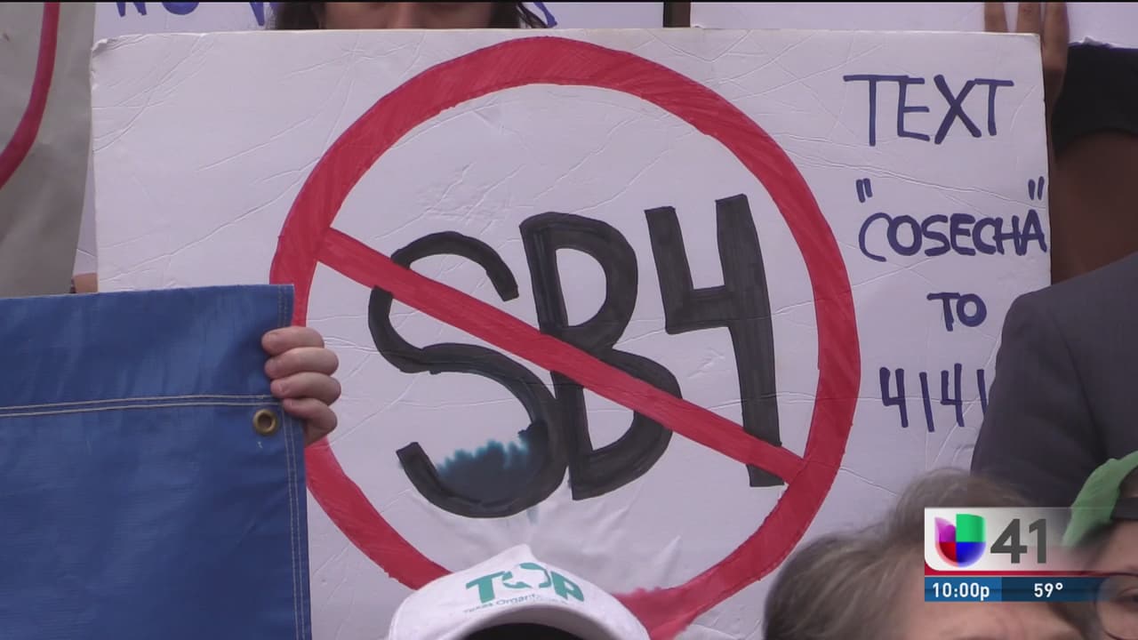 Los manifestantes se reunieron afuera de la alcaldía de San Antonio para exigir que se detenga el avance de esta ley que favorecería la colaboración entre policías locales y agentes de inmigración.