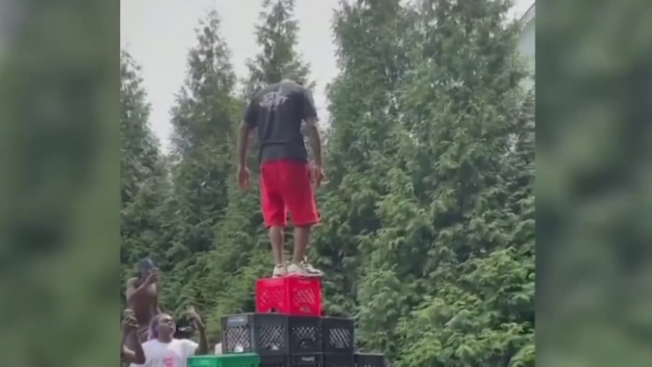 Este reto popularizado en la red social Tik Tok, consiste en caminar sobre cajas de leche apiladas en forma de pirámide y expertos advierten sobre posibles lesiones al intentarlo.