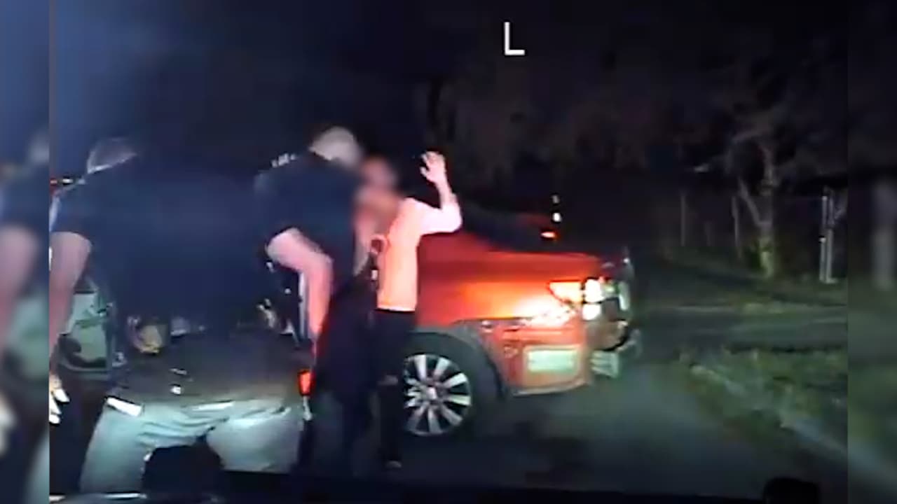 En el video de cámara corporal después del choque, Espinoza ordena a los tres menores de edad que venían en el vehículo, AJ y otros dos que venían en el asiento del copiloto y en la parte trasera, a que les enseñen sus manos y a bajarse del vehículo.