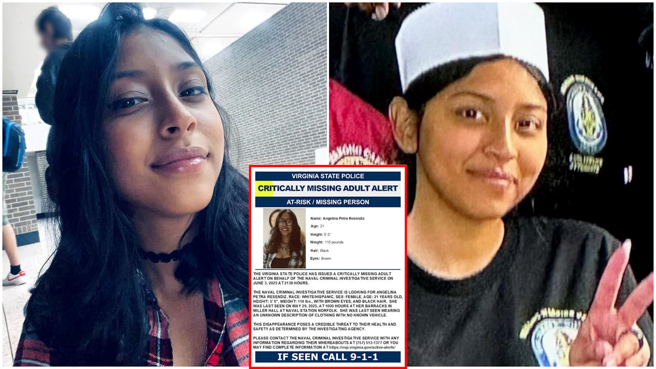 Angelina Petra Reséndiz, de 21 años, fue vista por última vez la mañana del jueves 29 de mayo, alrededor de las 10 am, en Miller Hall, su dormitorio en la Estación Naval de Norfolk, según la Policía Estatal de Virginia. La madre de la joven dijo que han pasado varios días desde que tuvieron noticias de ella, lo cual es un algo inusual.