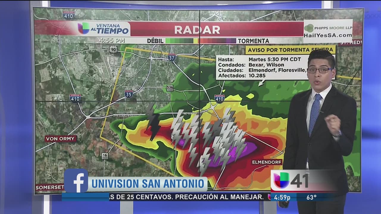 El granizo ha llegado a zonas como el condado de Bexar y el condado de Wilson. Evite conducir y estar al aire libre.