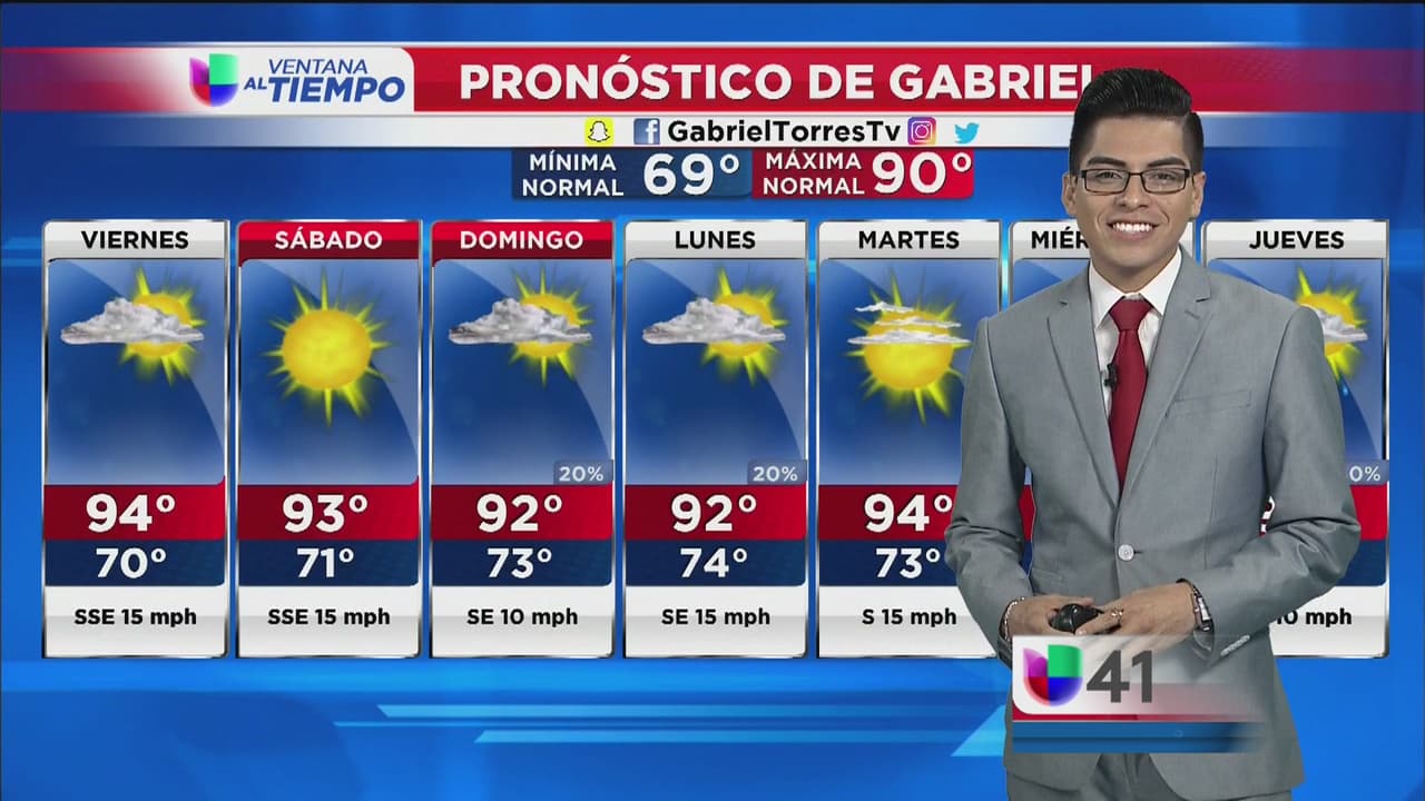 Este sistema provocará temperaturas elevadas, llegando hasta los 94 grados. El cielo estará parcialmente cubierto.
