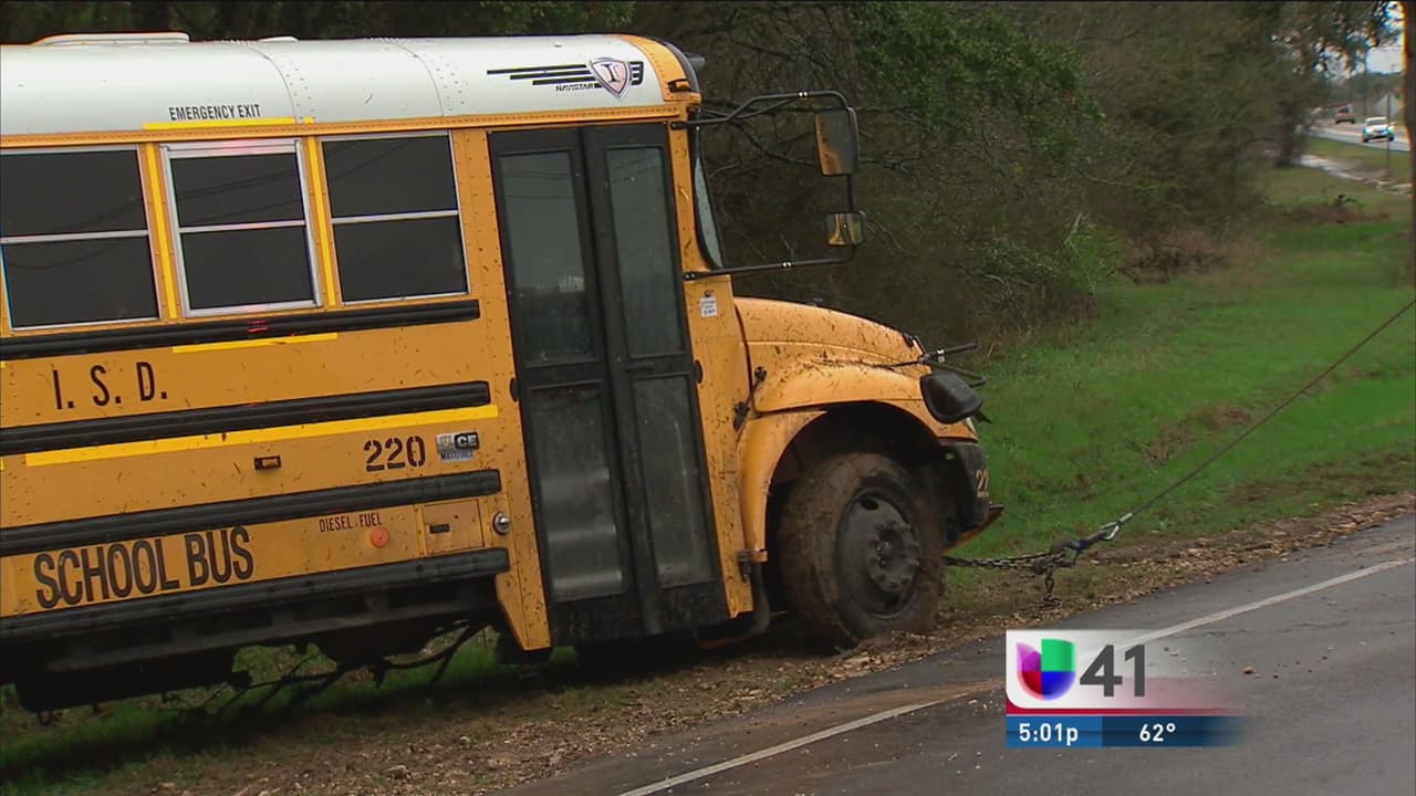 Un autobús escolar sufrió un accidente y se volcó sobre la carretera; dos personas resultaron heridas, pero los estudiantes quedaron ilesos.