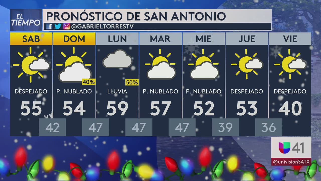 Prepárate porque este fin de semana la probabilidad de lluvia será de un 20 a 40 %, por lo que se esperan cielos parcialmente nublados mientras las temperaturas se mantienen frías con mínimas en los 42°F y máximas tan solo en los 55°F.