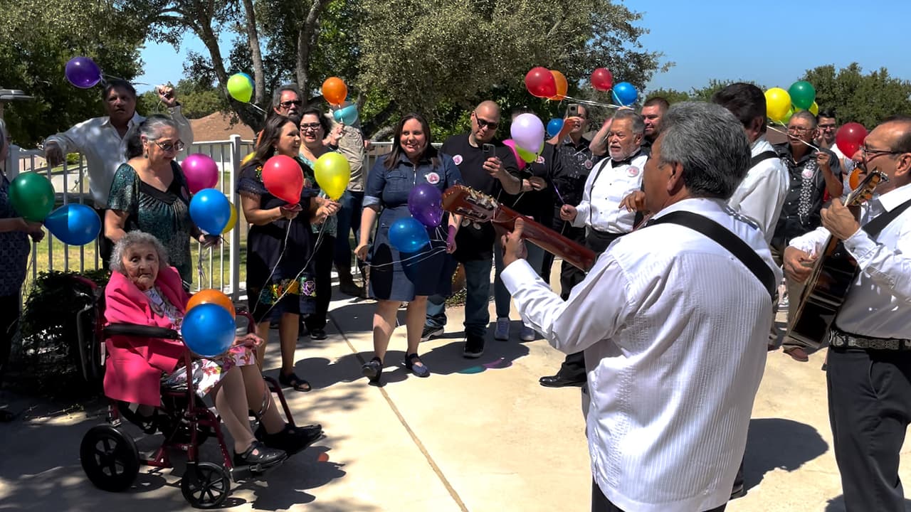 Beatriz Escobedo Vega cumple 102 años y su familia la festeja con una gran fiesta, mariachi y globos