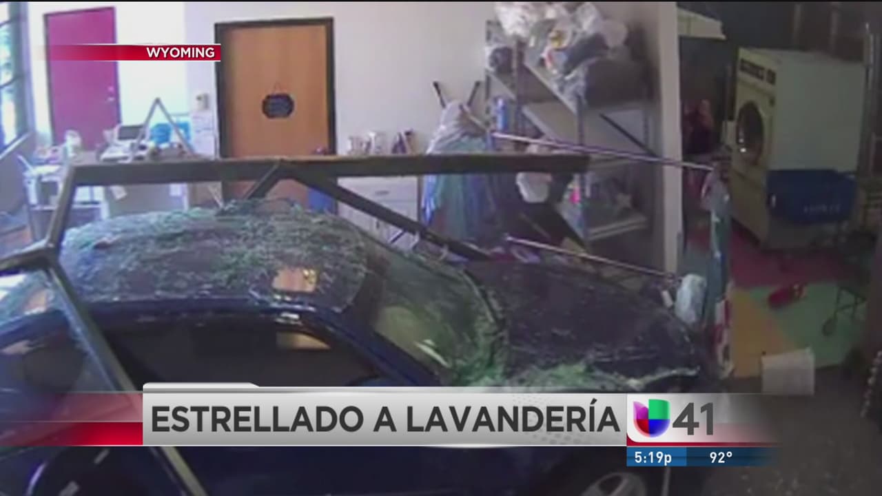 Autoridades investigan el por qué un hombre se estampó contra una lavandería llena de gente en Wyoming.