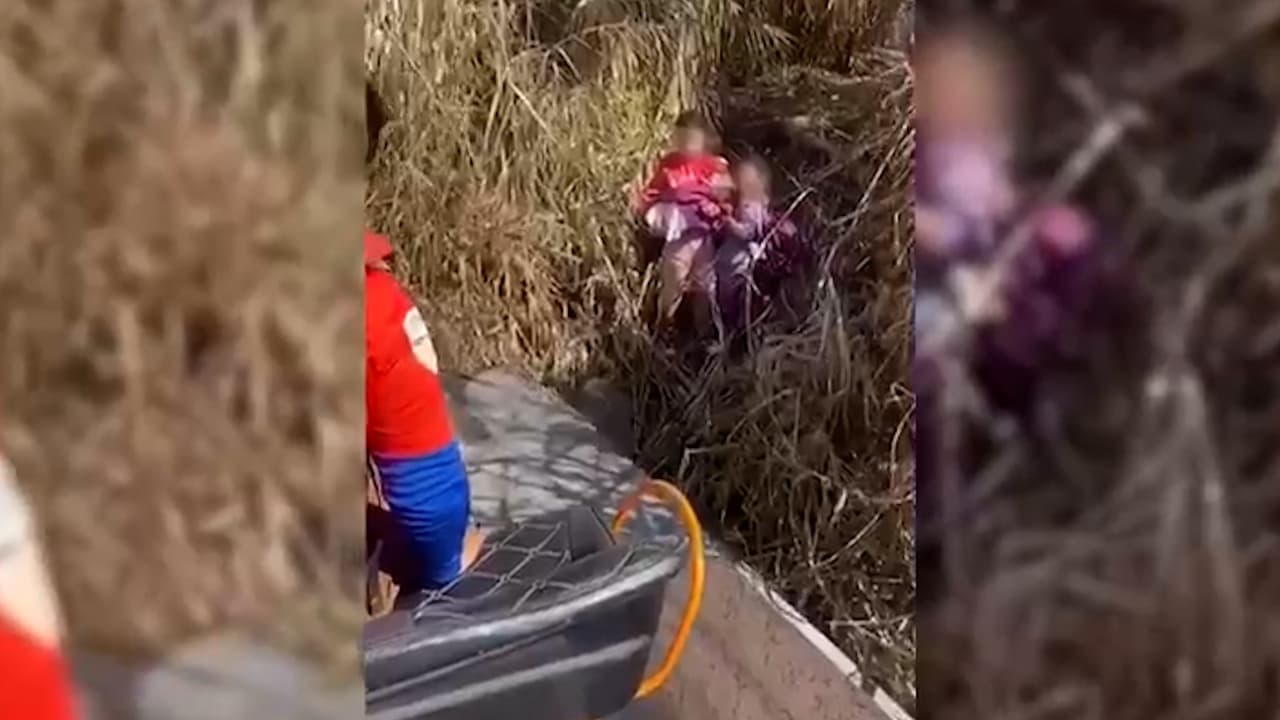 Captan el momento en que rescatan a 3 niñas inmigrantes en un islote del Río Bravo