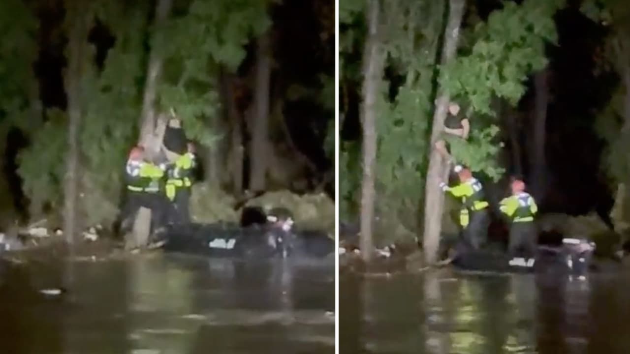 Captan el momento en que una persona es rescatada de un arroyo en San Antonio en inundación