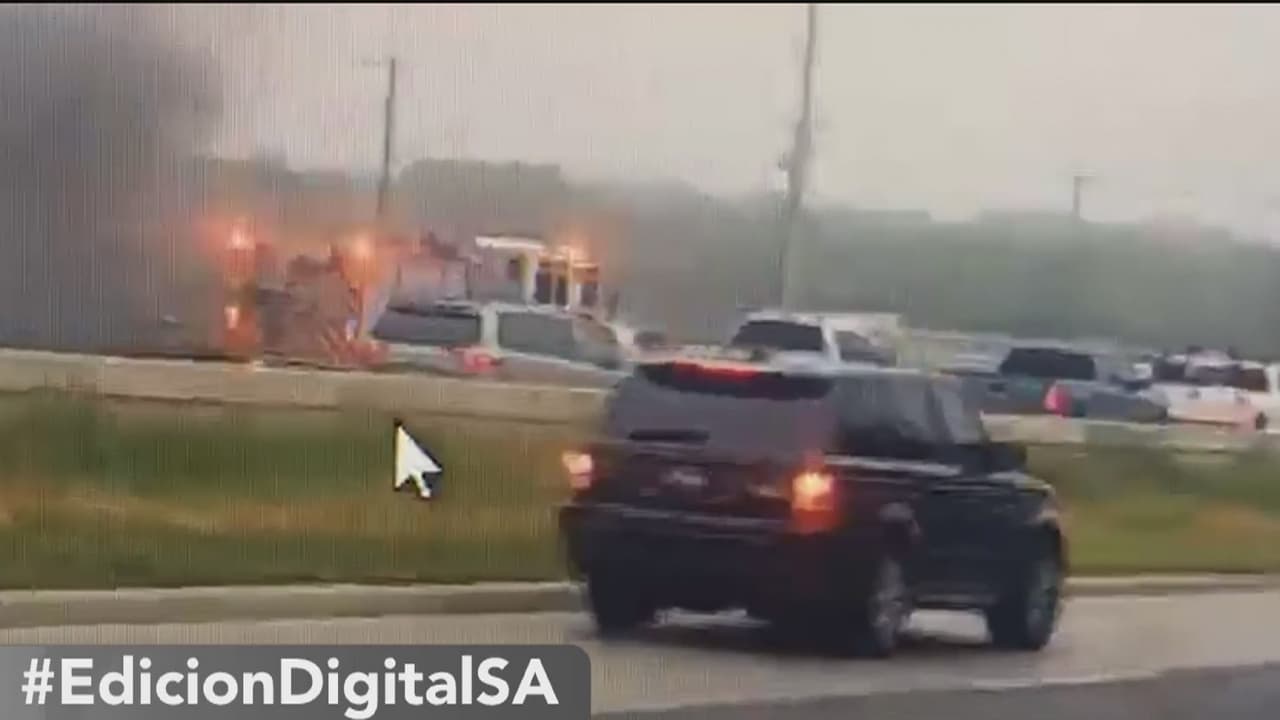 Un televidente grabó el momento en el que un auto se incendia en plena vialidad en San Antonio la mañana de este lunes. No se reportan heridos.