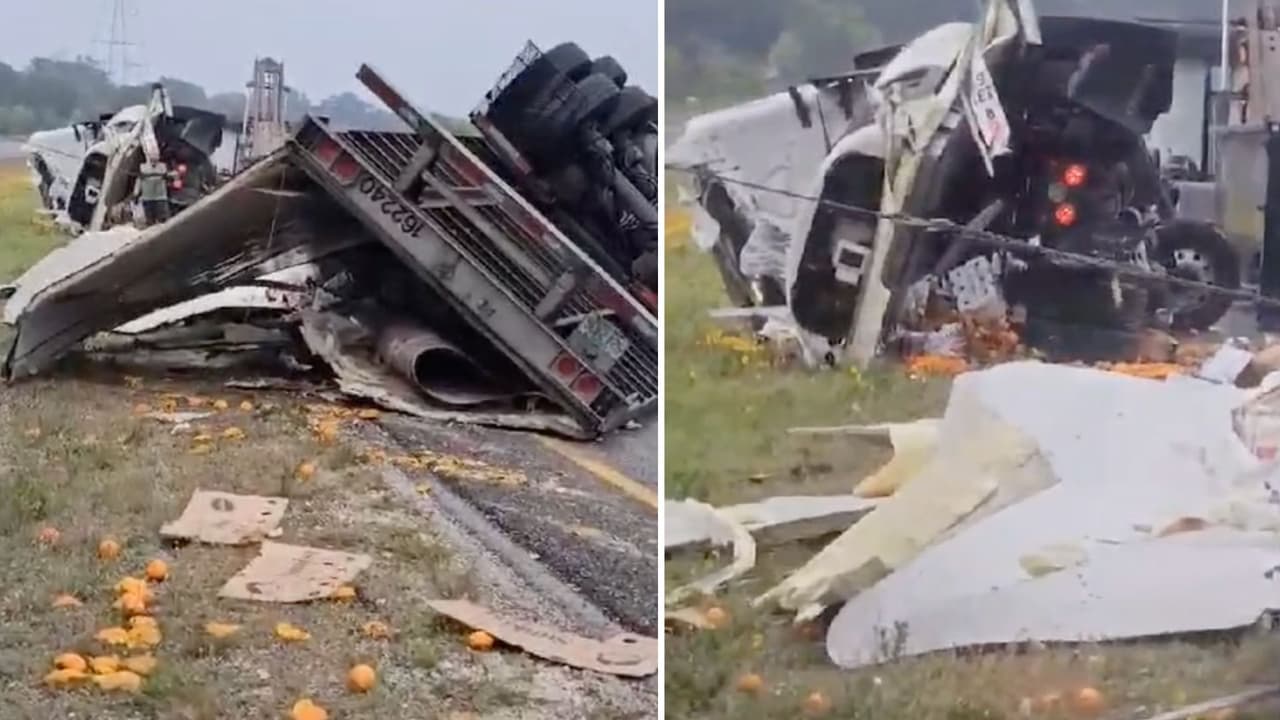 Carretera texana termina llena de naranjas luego de que un tráiler se volcó