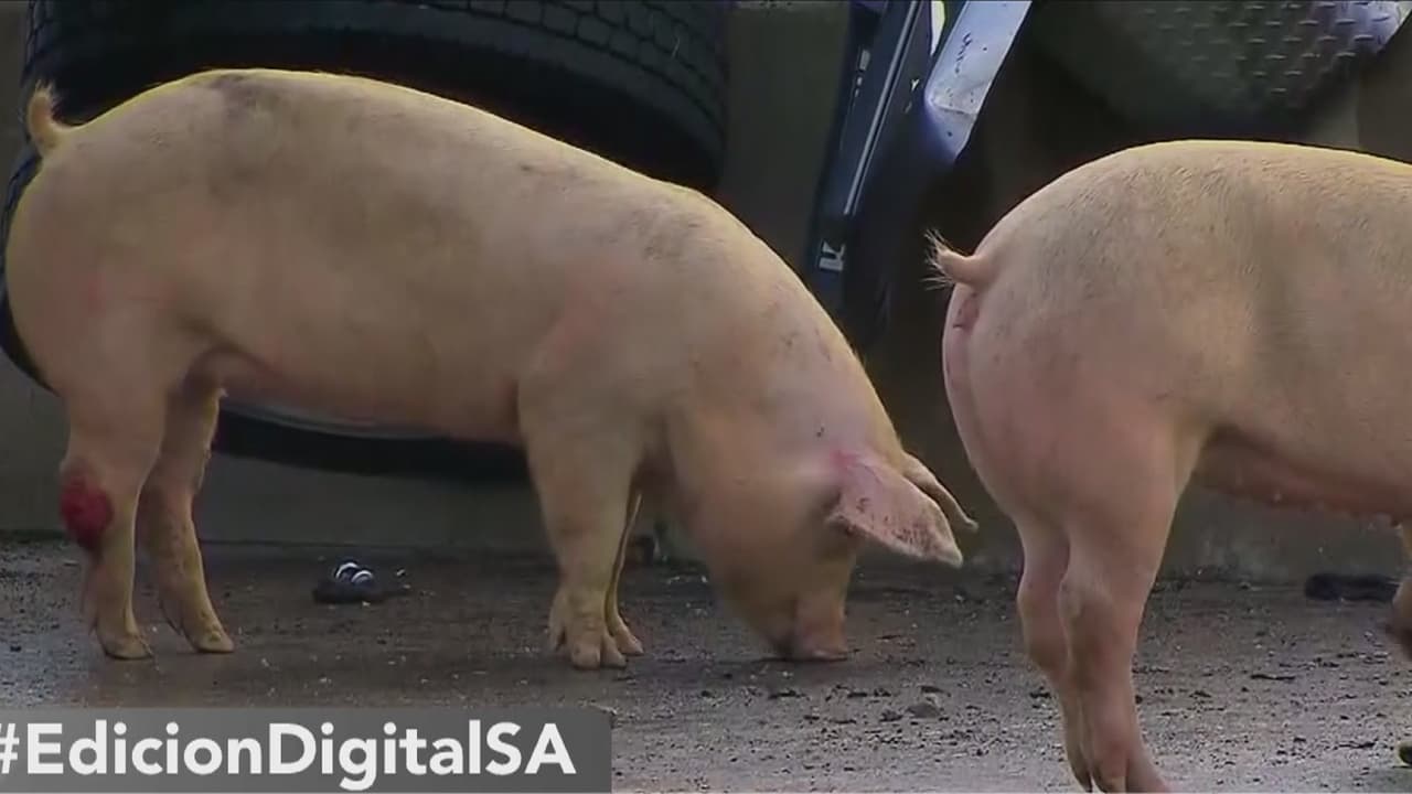Un accidente de un camión que trasportaba cerdos se accidentó provocando tremendo caos, ocasionando que la autopista estuviera cerrada por un par de horas.
