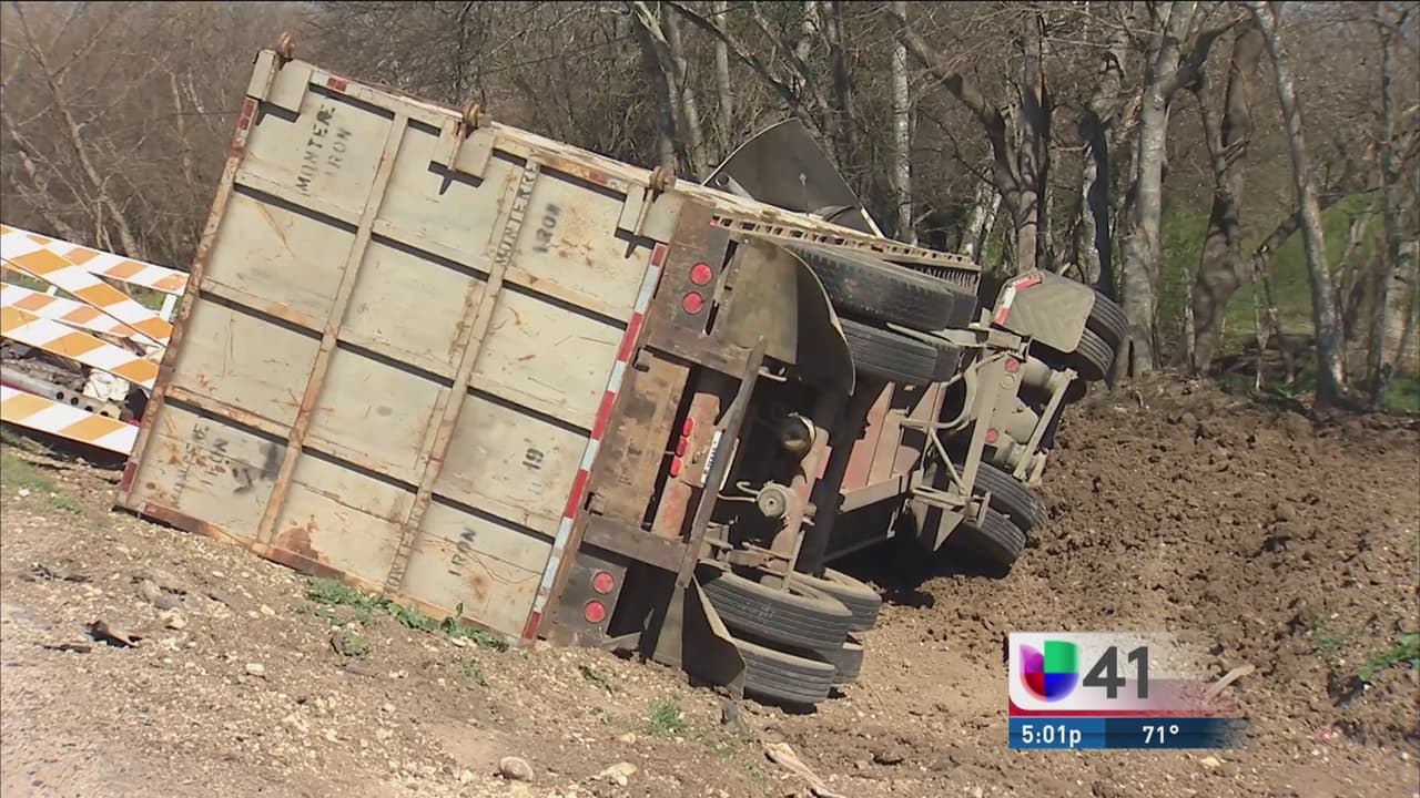 Un camión de 18 ruedas se volcó y golpeó una camioneta suburvan, lo que dejó un saldo de dos personas heridas.