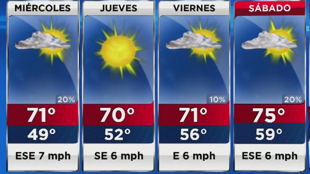 La máxima temperatura del día estaría alrededor de los 77 grados. Aunque el cielo se puede despejar en algunas horas de este martes, las condiciones de lluvia se mantendrán durante todo el día.