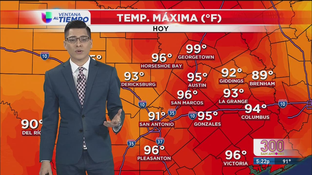 Temperaturas templadas, vientos en calma, cielos despejados y niveles de humedad bajos en San Antonio, para este miércoles se espera una máxima de 100 grados y una mínima de 75. Manténgase hidratado.