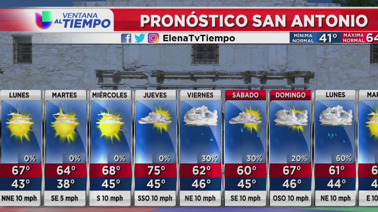 Para San Antonio se esperan temperaturas máximas superiores a los 60 grados, sin posibilidades de lluvia.