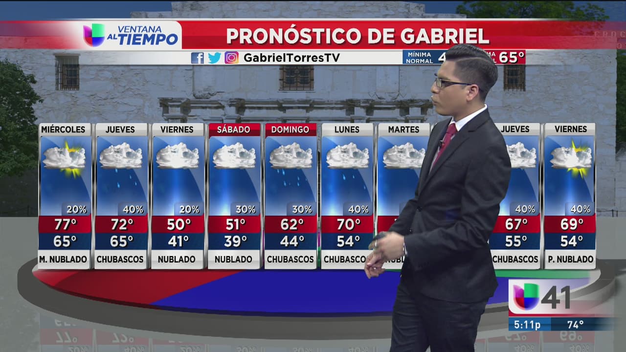 Prepárese para un miércoles con cielos nublados y temperatura máxima de 77 grados, para el jueves las posibilidades de lluvia son de un 40 por ciento, para el fin de semana regresan las bajas temperaturas.