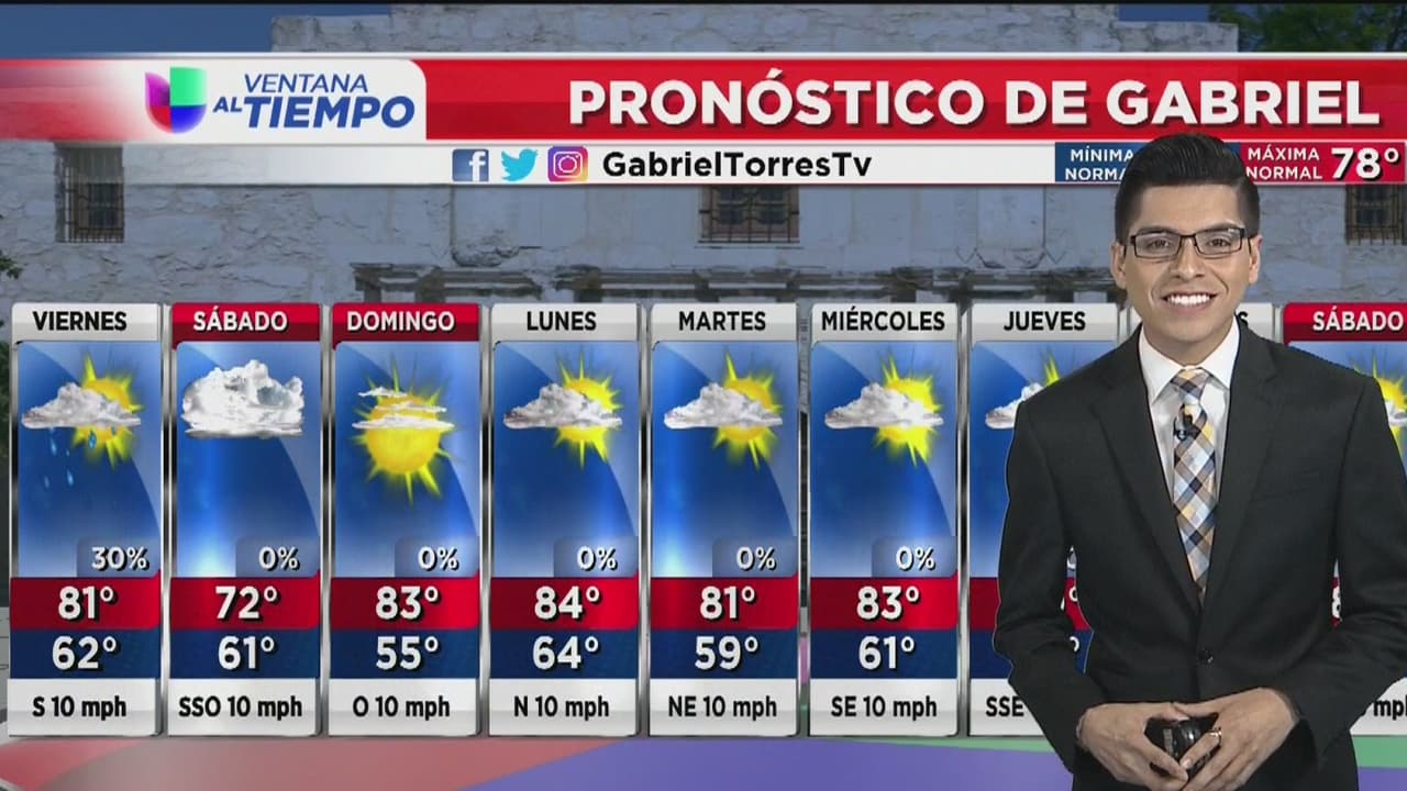 Para este viernes se espera una temperatura máxima superior a los 80 grados, con algunas probabilidades de chubascos ligeros.