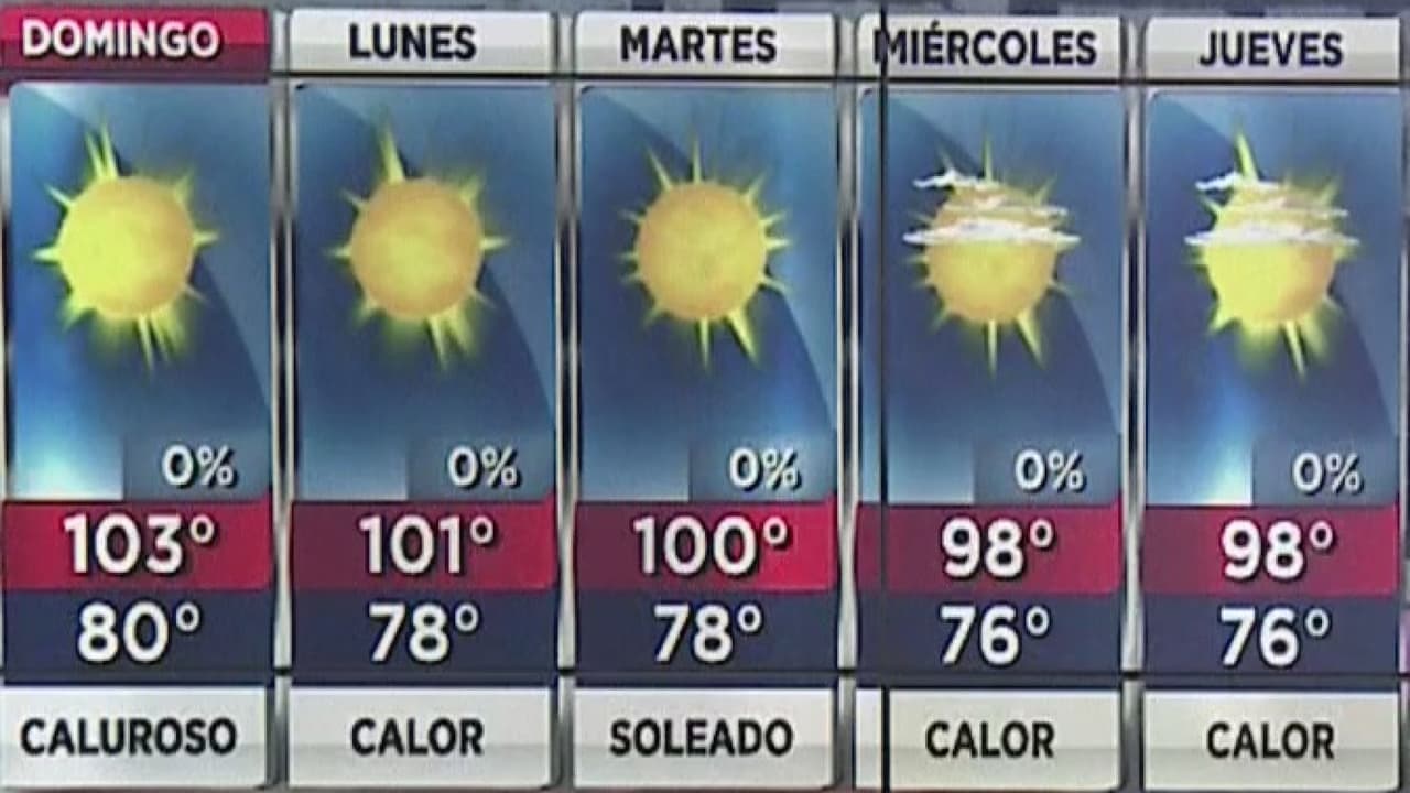 Se espera que las temperaturas máximas lleguen cerca de los 105 grados, con condiciones soleadas y estables.