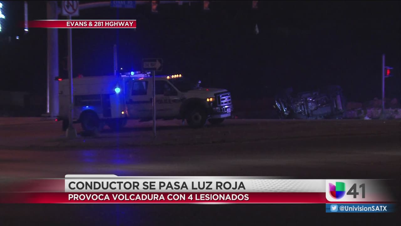 Conductor se pasó una luz roja y provocó una volcadura que dejó cuatro heridos