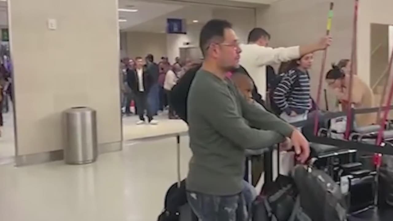 Pasajeros hacen largas filas debido a los retrasos y cancelaciones en el Aeropuerto de San Antonio