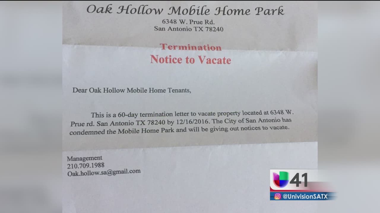 Algunos residentes de la comunidad de casas rodantes Oak Hallow se vieron forzados a desalojar sus hogares por el bien de su salud, sin embargo, administradores pidieron a través de una carta el desalojo total.