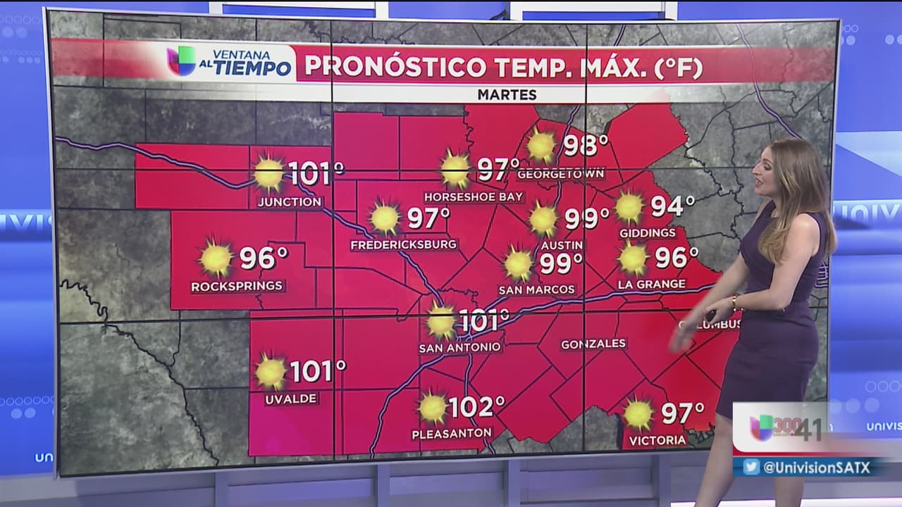Cielos mayormente despejados y temperaturas cálidas, para este martes se espera una máxima de 101 grados en San Antonio, con una sensación térmica de hasta 107 grados. Manténgase hidratado.