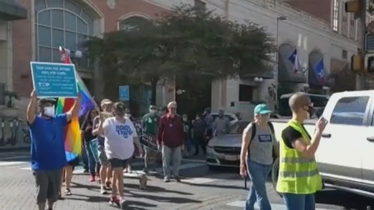 Decenas de residentes de San Antonio salen al centro de la ciudad para celebrar la victoria de Joe Biden