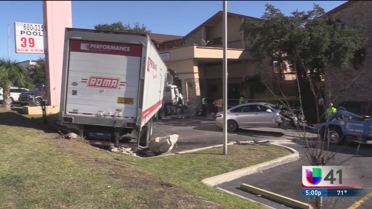 Después de un choque, camión de 18 ruedas se impactó contra un hotel al noroeste de San Antonio