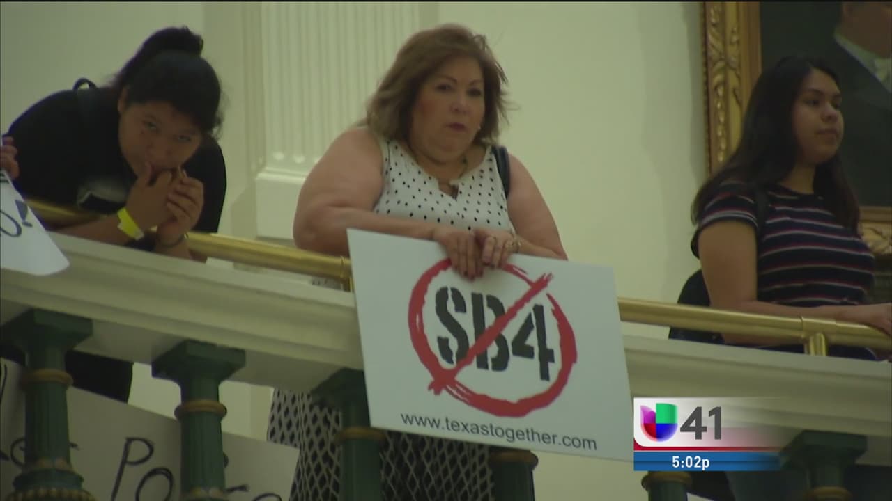 Manifestantes llegaron hasta el capitolio estatal para pedir que no se apruebe la propuesta de ley SB 4, la cual busca terminar con las ciudades santuario.