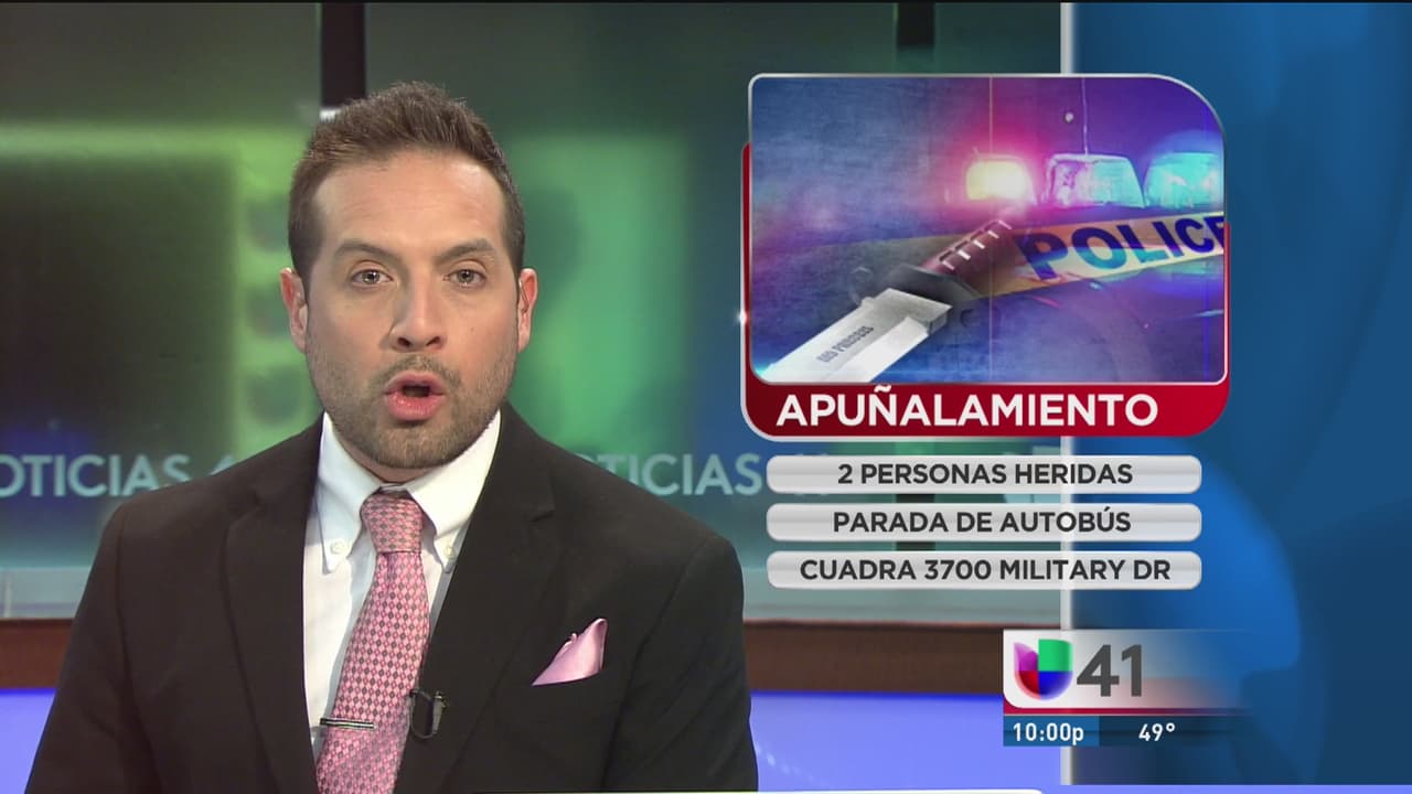 Dos personas resultaron heridas luego de ser apuñaladas por un sujeto en una parada de autobús al suroeste de San Antonio. La Policía indicó que el incidente se originó como una discusión entre las víctimas y el atacante.