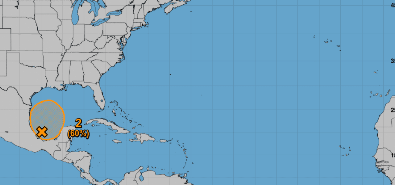 El Centro Nacional de Huracanes continúa monitoreando una amplia zona de baja presión sobre la Bahía de Campeche. Se pronostica que este sistema se moverá poco durante los próximos días y luego se moverá lentamente hacia el norte. Podría convertirse en una depresión tropical a finales de la semana.