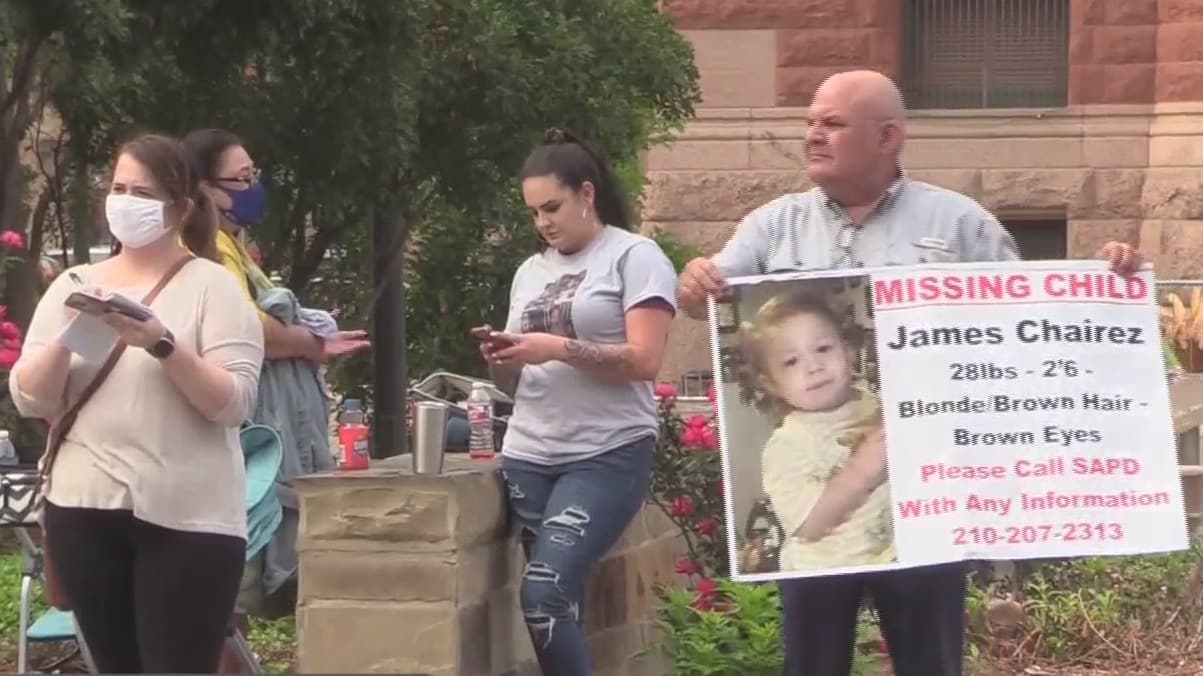 La madre y otros familiares del bebé James acudieron con pancartas a las afueras de la corte del condado de Bexar para pedir a las autoridades que continúe la búsqueda del menor y no se elimine su caso. Chairez desapareció a principios de enero y su madre fue arrestada por cargos de abandono de un menor.