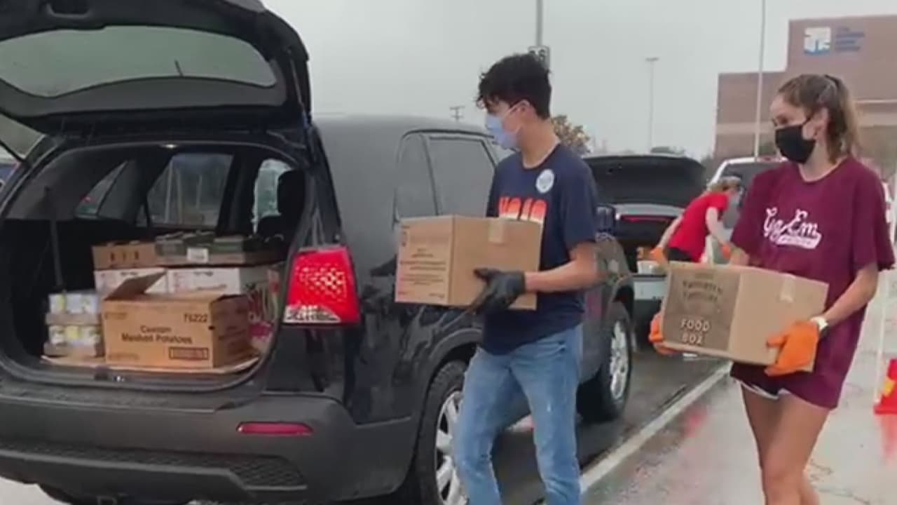 Familias acuden al Alamodome a la mega distribución de comida del Banco de alimentos de San Antonio